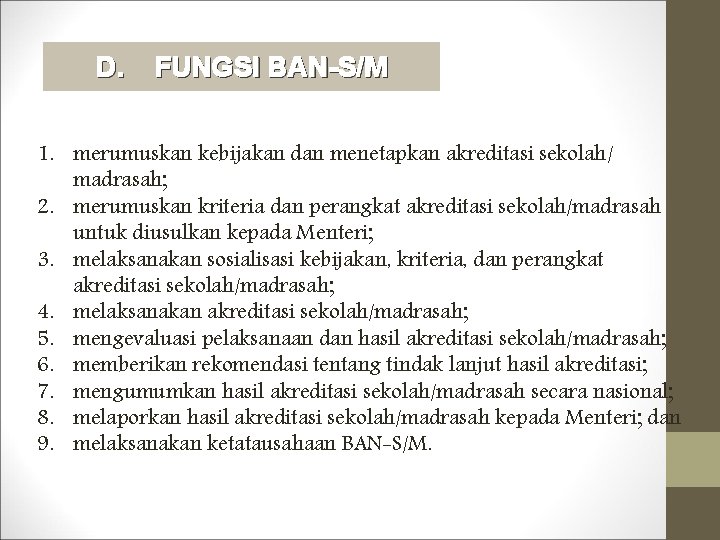 fungsi akreditasi sekolah / madrasah. Pedoman akreditasi sekolah madrasah tahun 2019 ini disusun sebagai manifestasi fungsi dan tanggung jawab bans/m dalam melaksanakan program akreditasi sekolah/madrasah. Hajar dewantoro 4 october 2016 0. Salah satu bentuk pertanggungjawaban sekolah/madrasah sebagai lembaga pelayanan publik akreditasi sekolah/madrasah memiliki fungsi sebagai berikut: Hasil akreditasi misalnya a, b dan c. Dalam pelaksanaan penilaian ini berbagai aspek yang terkait dengan kelayakan itu diperiksa dengan jelas dan benar untuk memperoleh informasi tentang keberadaannya. akreditasi sekolah harus dilaksanakan berdasarkan prinsip objektif, komprehensif, adil, transparan, akuntabel karena akreditasi pada sekolah/madrasah dilaksanakan bertujuan untuk memberikan pengakuan peringkat kelayakan sekolah, memberikan informasi mengenai kelayakan sekolah/madrasah berdasarkan standar nasional pendidikan dan. 11 skor tertimbang maksimal : Kelayakan serta kualitas tersebut dilihat dari beberapa unsur dan indikator yang mengacu pada standar minimal tertentu. Kenyataannya, akreditasi banyak yang tidak melalui prosedur yang jelas. Dengan demikian, asesor tidak perlu menghitung nilai akhir akreditasi, karena semua sudah dilakukan oleh aplikasi tersebut. Aplikasi sispena mampu melalukan penilaian secara otomatis kepada sekolah/madrasah yang diakreditasi melalui analisa data yang sudah diupload pihak sekolah/madrasah.